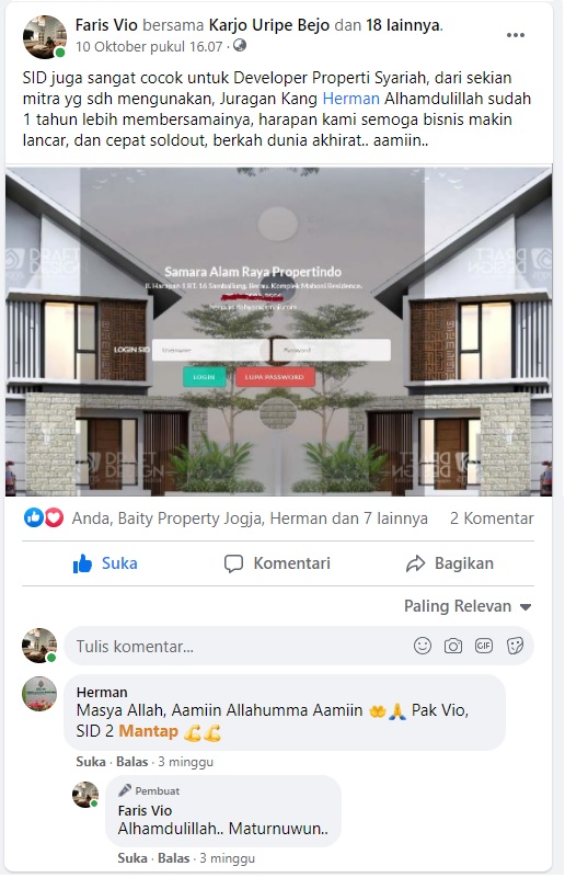 dan masih banyak lagi feature yang tidak kami jelaskan disini, untuk panduan dan info detail tentang SID II ini bisa anda search juga di youtube dengan kata kunci SISTEM INFORMASI DEVELOPER PROPERTI.